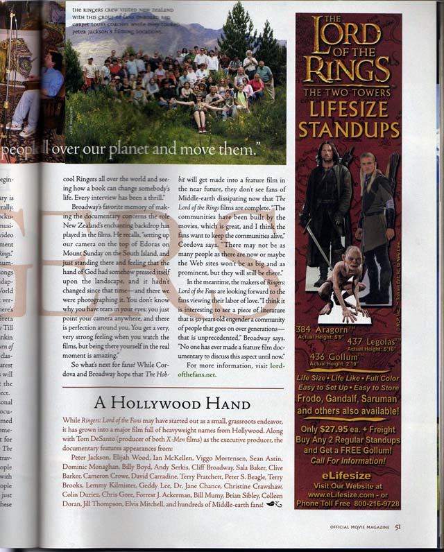 Article from The December issue of "The Lord of the Rings" Official Fan Club Magazine